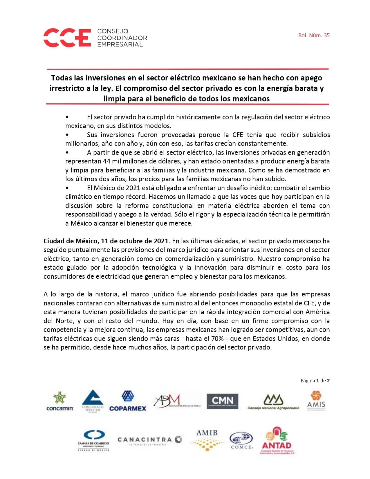 - “El sector privado ha cumplido históricamente con la regulación del sector eléctrico mexicano, en sus distintos modelos. Sus inversiones fueron provocadas porque la CFE tenía que recibir subsidios millonarios, año con año y, aún con eso, las tarifas crecían constantemente.